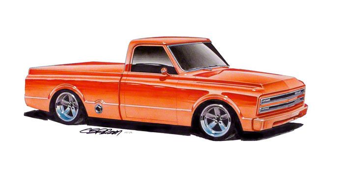 Limited Edition Print, Chevy C-10 Truck, Orange, 1967