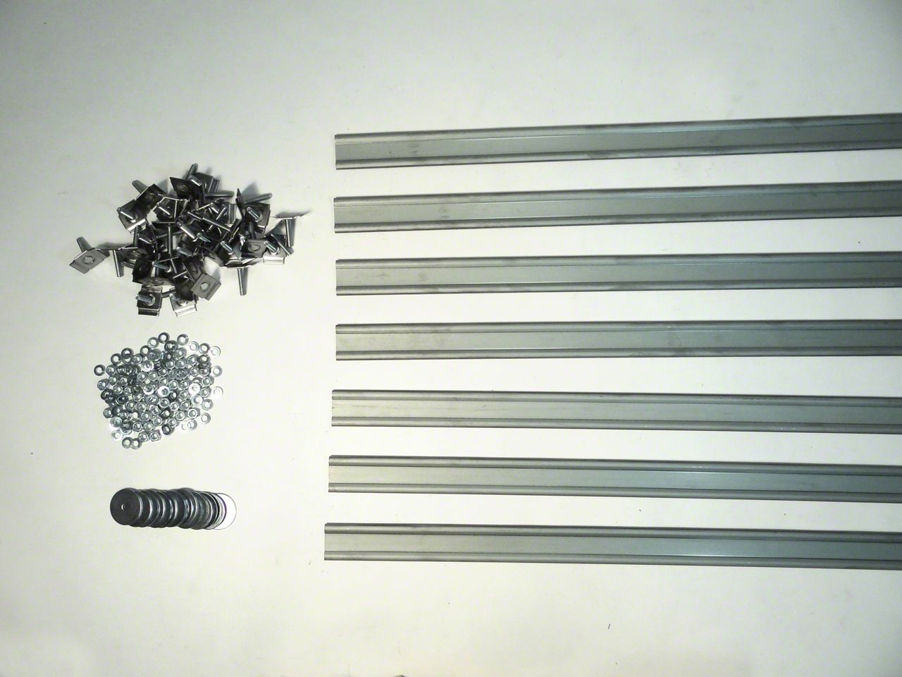 These strips use a completely hidden fastening system developed by MAR-K. Special bolts slide into the groove on the underside of the strip to adjust to any bolt location. These strips are precut to correct length for your truck. Bed strips include the correct number of (1 1/4") hidden fasteners for your truck. Customer may need to purchase a bolt kit for bed-to-frame and side mounting. This truck requires 7 bed strips. Made by MAR-K in Oklahoma City, USA. Each strip is 1 1/2" wide. Steel bed strips should be painted.