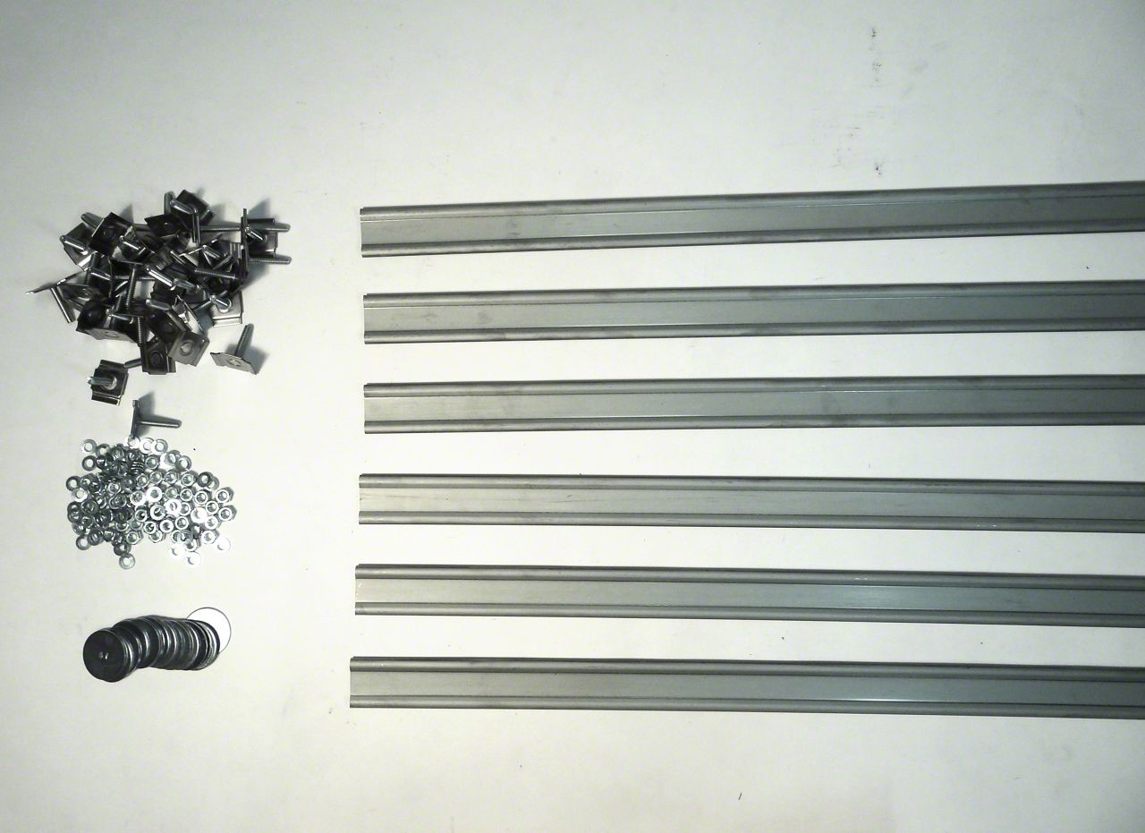 These strips use a completely hidden fastening system developed by MAR-K. Special bolts slide into the groove on the underside of the strip to adjust to any bolt location. These strips are precut to correct length for your truck. Bed strips include the correct number of hidden fasteners for your truck. Customer may need to purchase a bolt kit for bed-to-frame and side mounting. This truck requires 6 bed strips. Made by MAR-K in Oklahoma City, USA. Each strip is 1 1/2" wide. Steel bed strips should be painted.