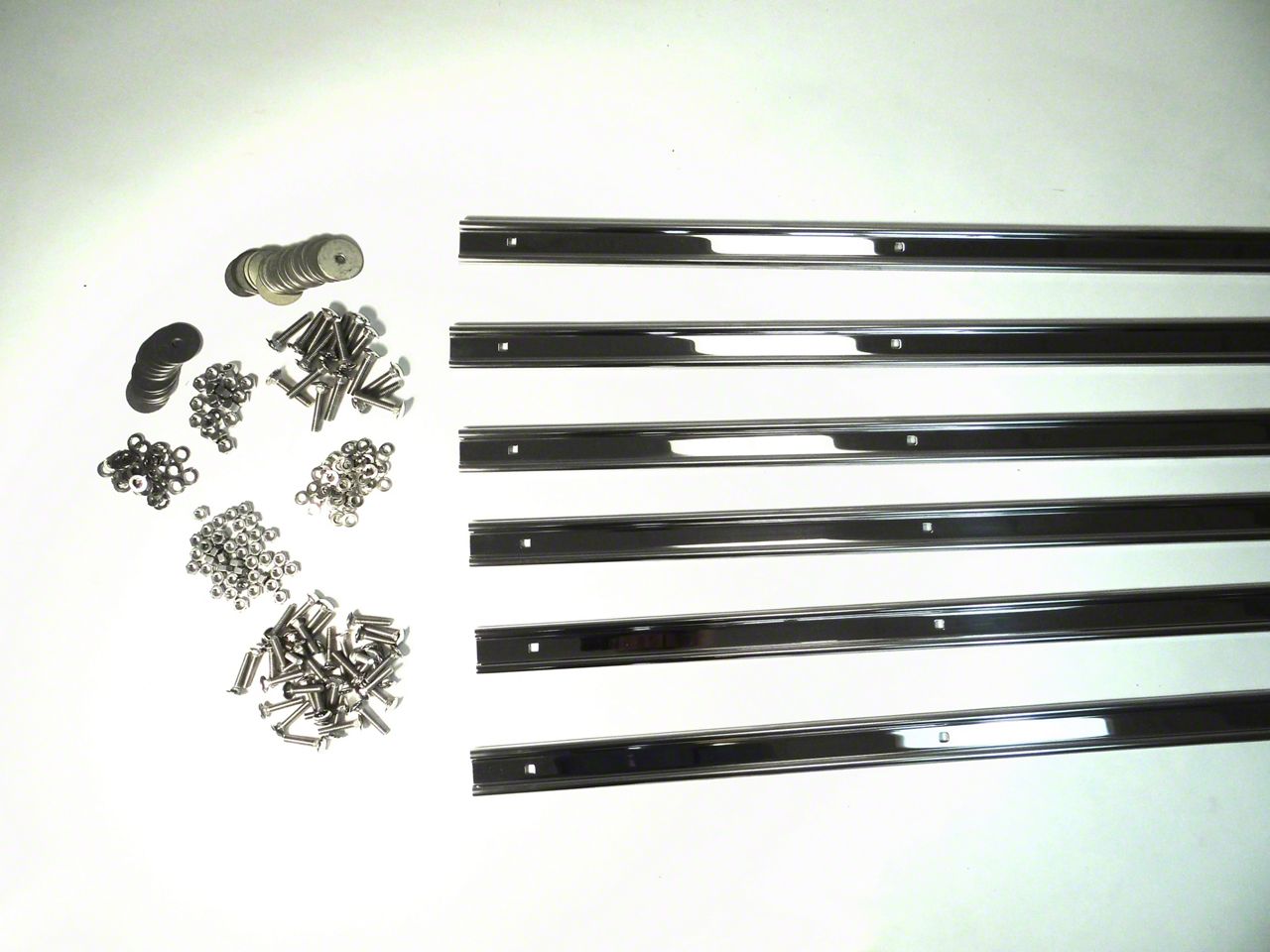 Polished bed strips are very shiny, giving them a "chrome" look. Bed strips are punched with square holes according to the original pattern. Each strip is 1 1/2" wide and 18 gage thickness. Stainless steel is type 430, bright and slightly magnetic. This truck requires 6 bed strips. This kit includes the bed strip and angle strip bolts needed for this truck. Made in Oklahoma City, USA.