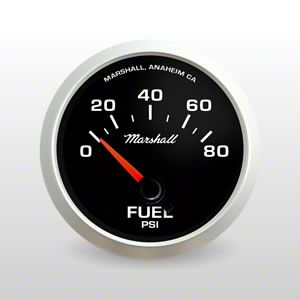 Marshall Fuel Pressure GaugesMarshall 2-1/16" fuel pressure gauges are available in a variety of dial colors and bezel options. Marshall fuel pressure gauges feature a precise stepper motor movement and through dial LED backlight with illuminated pointer for easy viewing at night.Marshall Comp II LED and SCX fuel pressure gauges include sending unit, u-clamp, connectors and instructions.Made in the U.S.A.This product is proudly made in Anaheim, California USA.Through-Dial LED LightingMarshall gauges feature through-the-dial LED lighting and glowing 3D pointer for a cool look and easy viewing at night.