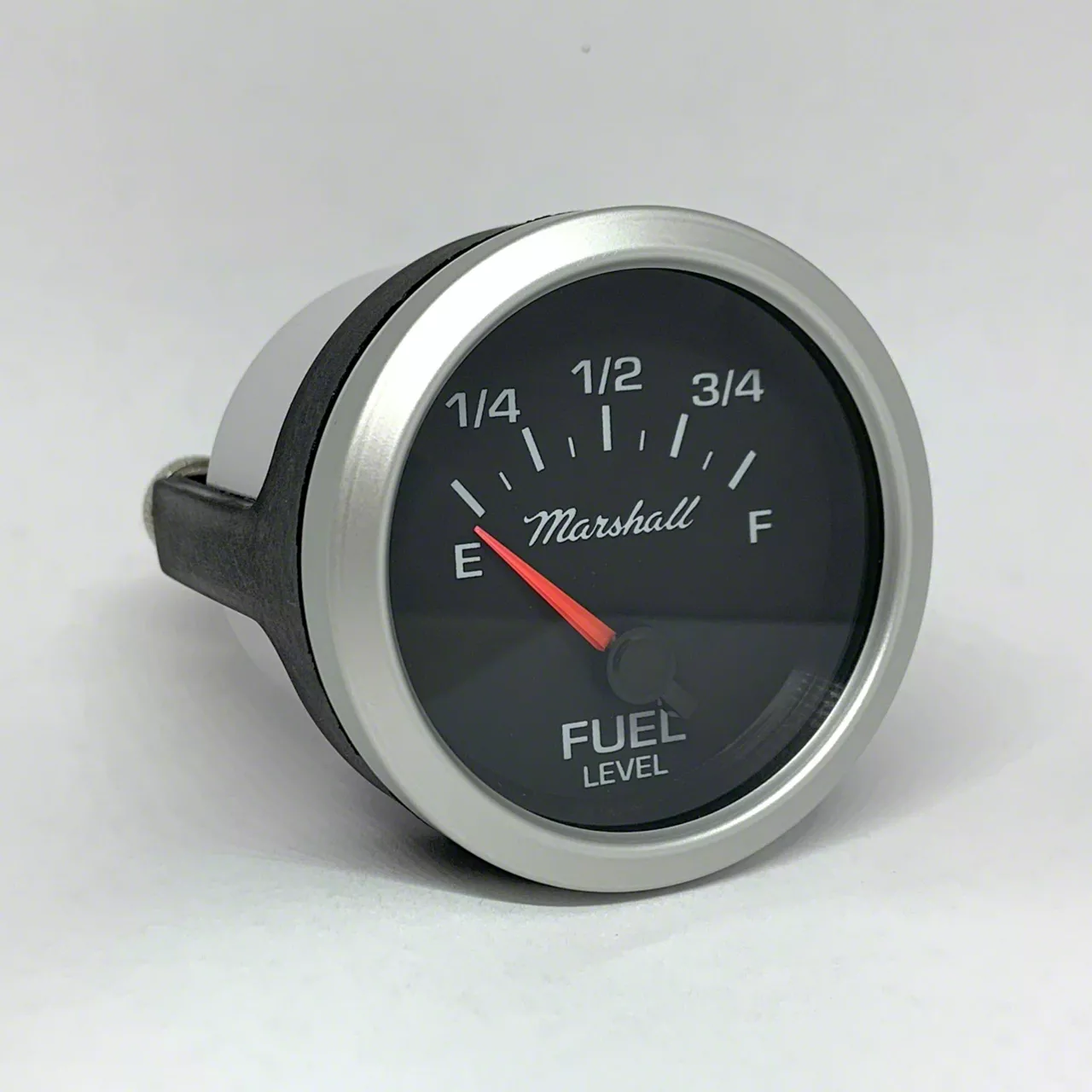 Programmable Fuel Gauge. The Marshall Instruments COMP II LED Black Dial 2-1/16-Inch Programmable Fuel Level Gauge with Silver Aluminum Bezel provides accurate fuel level readings for a wide range of vehicles. It employs an advanced stepper motor and through-dial LED backlighting to deliver precise and easily visible measurements at any time, including night driving. This gauge is essential for reliably monitoring fuel levels to avoid unexpected shortages.