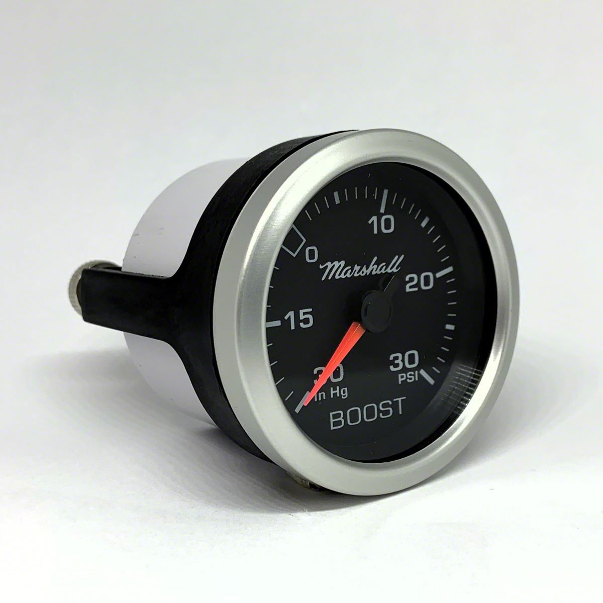 2-1/16" SCX full sweep electric vacuum boost gauge.Gauge Type: Vacuum/BoostGauge Range: 30 InHg - 30 PSISender Included: YesPeak Recall and User Programmable Full Dial AlarmThis gauge features one-touch peak recall and programmable high and low full dial alarm. There is also an external alarm output (12V, 500mA) that can be used to activate an external warning light when an alarm condition exists.Peak recall and programmable full dial warning are accessed via the included remote mount push button.