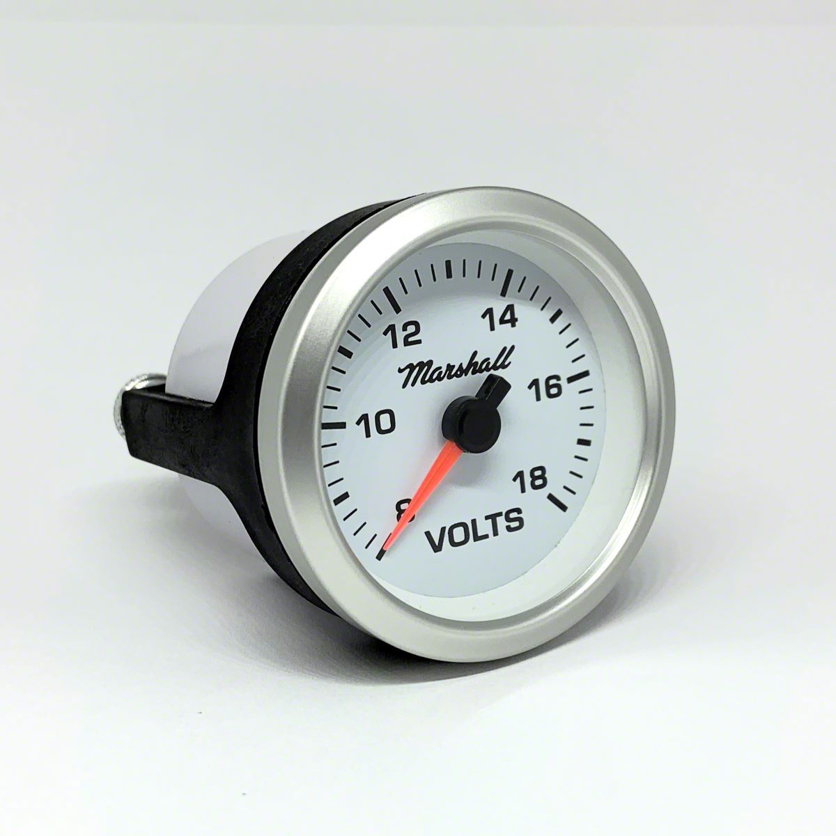 Precision Volt Meter. The Marshall Instruments SCX White Dial 2-1/16-Inch Volt Gauge, with an 8-18V range and silver aluminum bezel, accurately measures electrical voltage to help monitor your vehicle’s electrical system. This ensures optimal battery and charging system performance and helps prevent electrical failures.