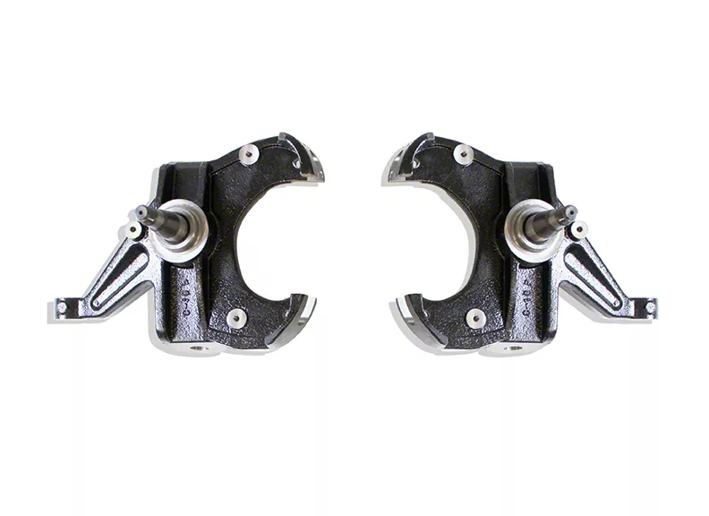 MaxTrac Suspension 101125L offers a 2.5" lowering spindles for your 2wd 1973-1987 Chevy C10 (with 1" thick rotors). Maxtrac Suspension has one of the broadest lines of spindles, which cover both lowering and lifted applications. The 2.5" drop spindles are designed to be direct bolt on installation, not requiring any cutting or modification to your stock Chevy C10. Maxtrac's one piece ductile steel spindles exceed OEM quality, maintain alignment, and keeps the stock ride quality true.