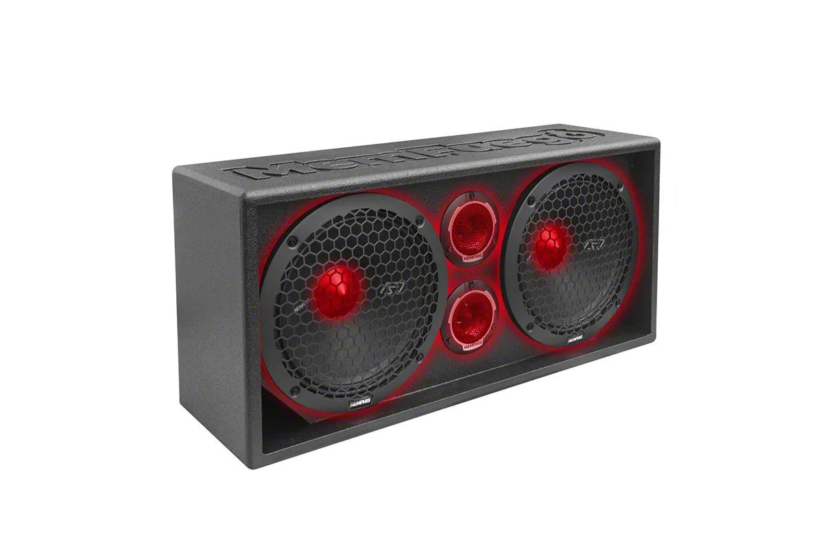 Unleash immense sound from a compact package with MemFuego from Memphis Audio! Our new MemFuego all-terrain full range box boasts a rugged bed liner exterior, perfect for turning heads at tailgates, car shows, or anywhere you want to make a bold sound statement. Featuring dual 10″ SR Pro mids and pro audio tweeters, it delivers an explosive 500 watts of professional-grade audio in a portable format. With quick disconnect plugs for hassle-free mobility, you can effortlessly set up your MemFuego for a massive sound experience wherever you desire. SRXPE10D4T boxes showcase a mesmerizing display of RGB LED lights, including an illuminated dust cap and rear-mounted ring lights on the mids and fully translucent illuminating tweeters, creating an epic lightshow. With a built-in handle for easy transportation, MemFuego is your ticket to a good time anywhere you go.