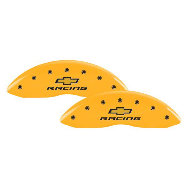 Functional Benefits Beyond Looks. Beyond appearance, the MGP Brake Caliper Covers with Chevy Racing Logo; Yellow; Front and Rear help reduce brake dust on wheels and provide added heat dissipation thanks to increased surface area—supporting improved brake performance and cleaner wheel maintenance.