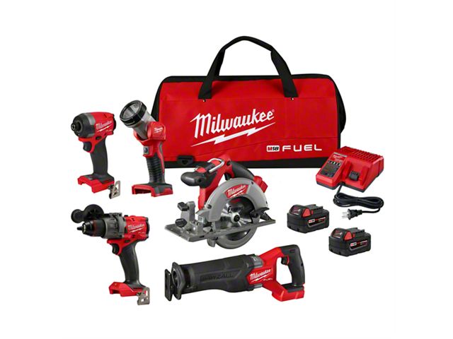 The Milwaukee M18 FUEL 5-Tool Combo Kit delivers users the most advanced 18-volt cordless drilling, fastening, and cutting technology in the industry. This Milwaukee 5 Tool Combo Kit features five M18 FUEL 18-Volt Lithium-Ion brushless cordless tools including a 1/2 in. Hammer Drill, 1/4 in. Impact Driver, SAWZALL Reciprocating Saw, 6-1/2 Circular Saw, and LED work light. M18 FUEL is fully compatible with the Milwaukee M18 18-volt cordless system, featuring over 250 solutions. M18 FUEL features the most advanced cordless technology in the industry a POWERSTATE Brushless Motor, REDLINK PLUS Intelligence, and REDLITHIUM Battery Technology, resulting in longer motor life, longer run time, and more power.