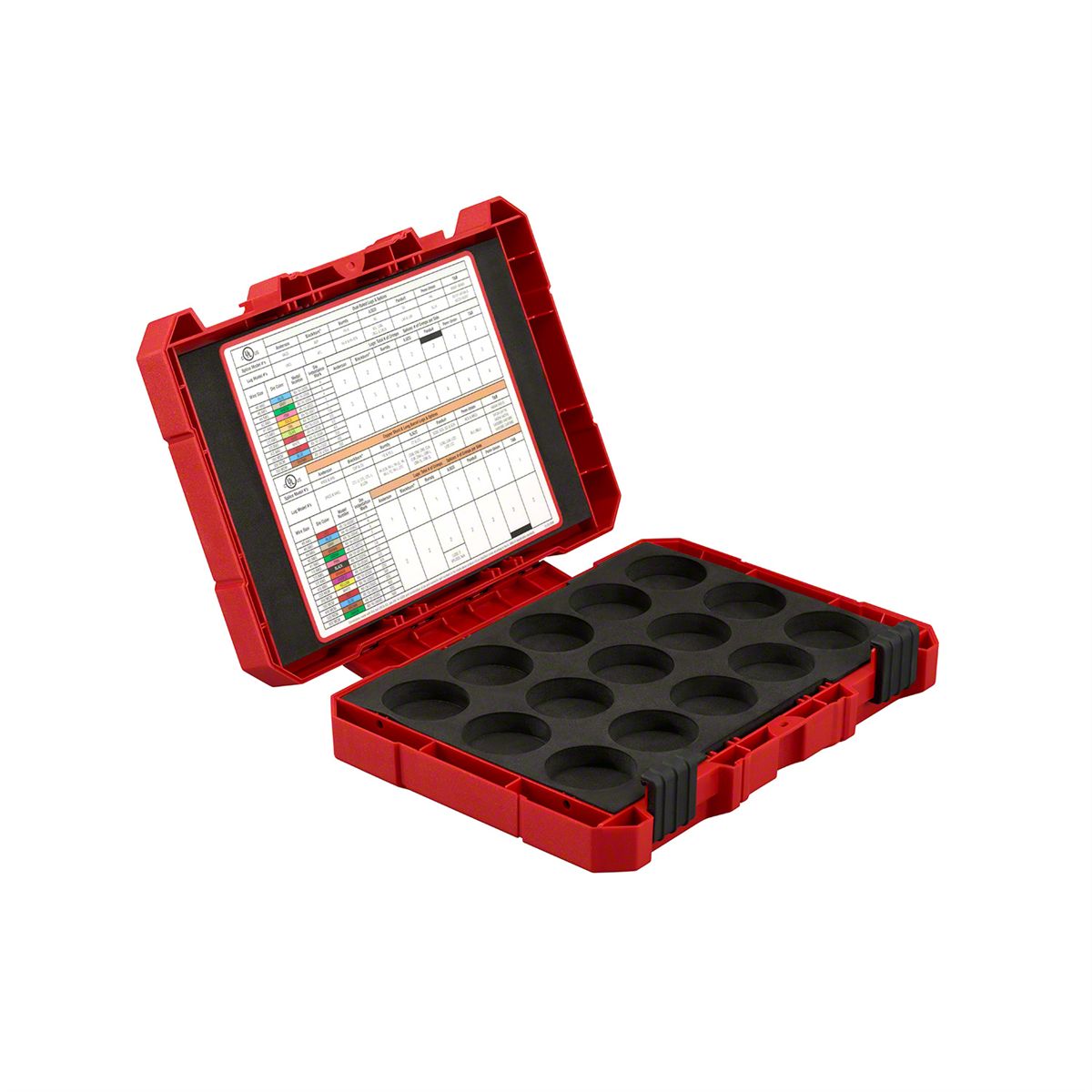 Holds 15 sets of Milwaukee U dies for convenience and ease of use. Comes with Milwaukee UL classification charts for both Cu and dual rated connectors as well as size identification labels for both Cu and dual rated connectors to keep dies organized and improve ease of die selection.