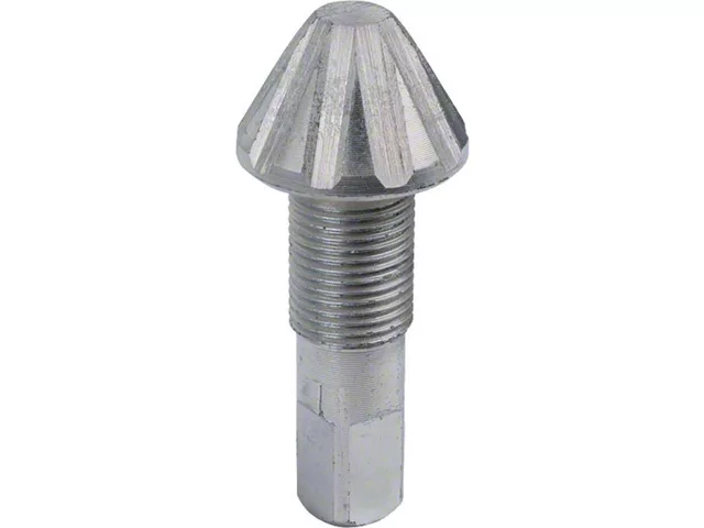This goes through the backing plate so you can adjust the brakes. To remove the brake adjustment wedge, first remove the brake shoes and turn the wedge clockwise until it is loose in its housing. Tap the square end to pop off the cap, and the wedge can then be removed.
