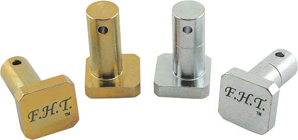 This set includes 4 pins with specially designed square heads. The heads have 3 different thicknesses (stock, 1/6" & 1/8") allowing you to rotate the heads to properly center rear brake shoes in the drums. This eliminates the need to replace worn lower brake tracks. Simply file the track flat & rotate the pin - saving time & money.