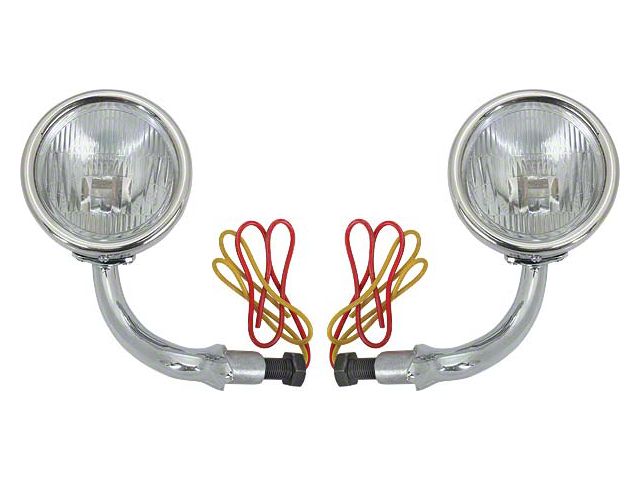Duplicates of the originals, complete with stainless steel buckets and chrome arms. Includes 6 or 12 volt bulbs with wiring and mounting hardware. Turn signals are installed.