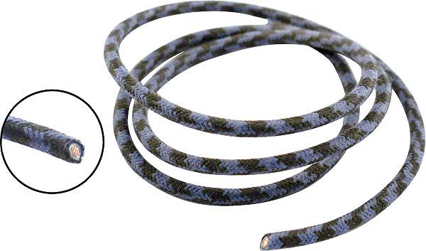 This cloth covered wire starts at the driver's side of the terminal box, runs up the windshield post and halfway across the header, then back to the light. Run a ground wire from the light to the side body. Sold by the foot.