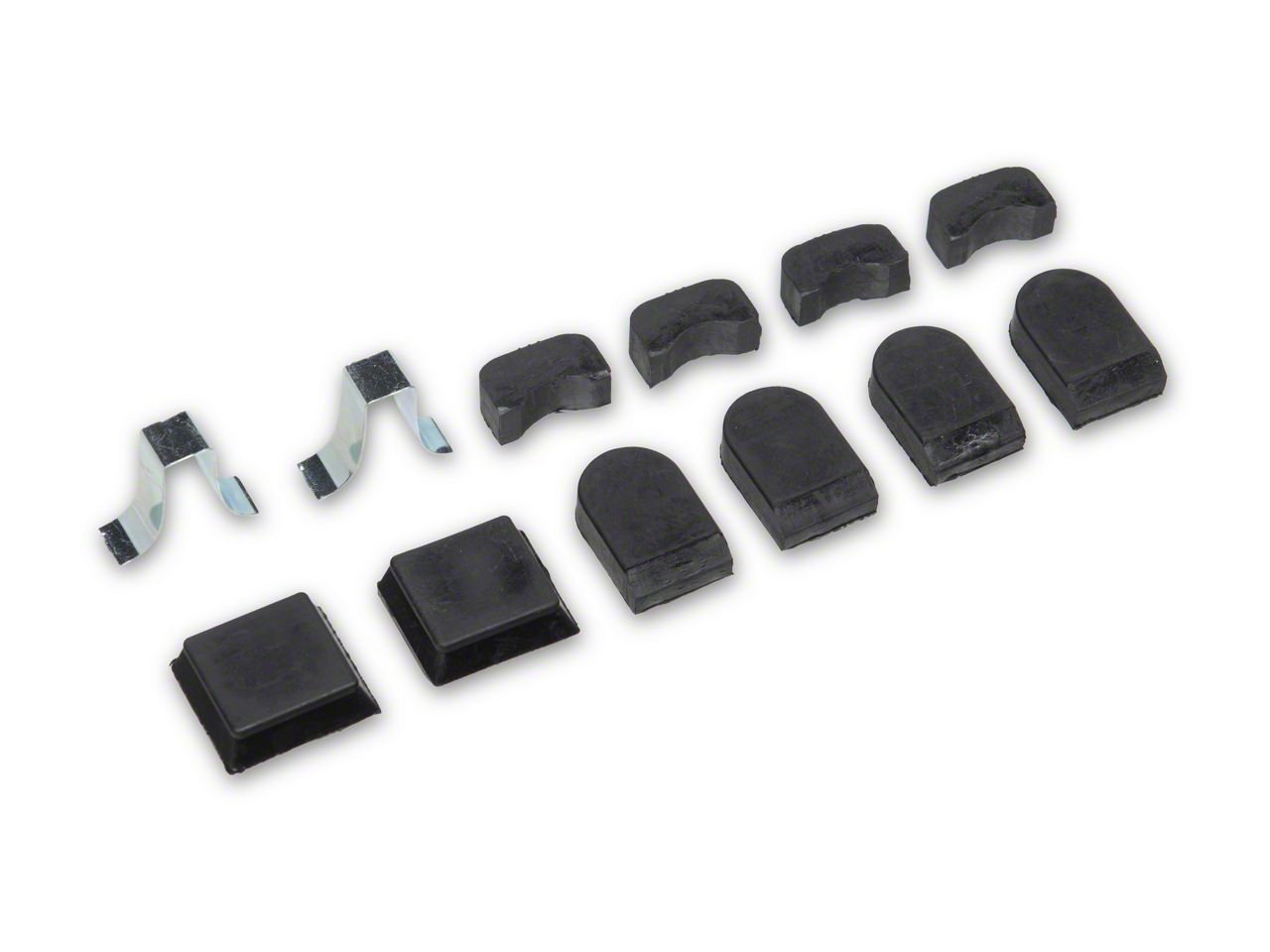 Includes (10) rubber bumpers & (2) metal clips.