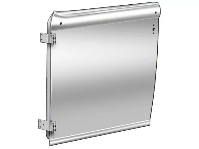 This is a door for open cars that includes the hinges, and inner and outer die stamped panels already assembled. It is ready to accept an outside door handle, and fits the left (driver) side.