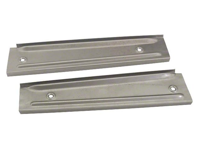 These are located between the rear seat riser and the door sill. The door upholstery panel sets into these. USA made.