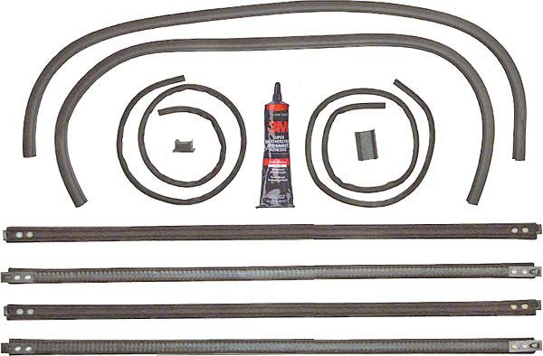 The kits include upper window sponge seals, T shaped anti-rattle rubber (when required), lower glass cushion bumpers & adhesive. Each piece has specific applications, this is not a general mix of pieces.