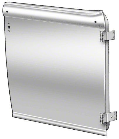 This is a door for open cars that includes the hinges, and inner and outer die stamped panels already assembled. It is ready to accept an outside door handle, and fits the right (passenger) side.