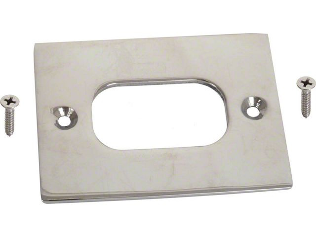 Polished stainless plate that screws to the floorboards to hold your brake boot in place.