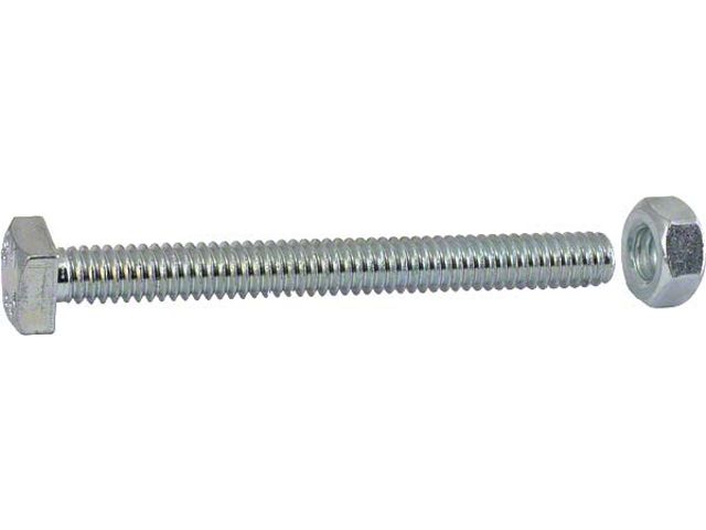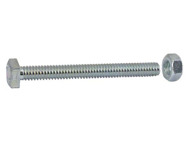 This set includes 2 square head bolts 1/4"-20 x 2-3/8" and 2 hex nuts. The nuts face the front of the car. One set is enough for two clamps.