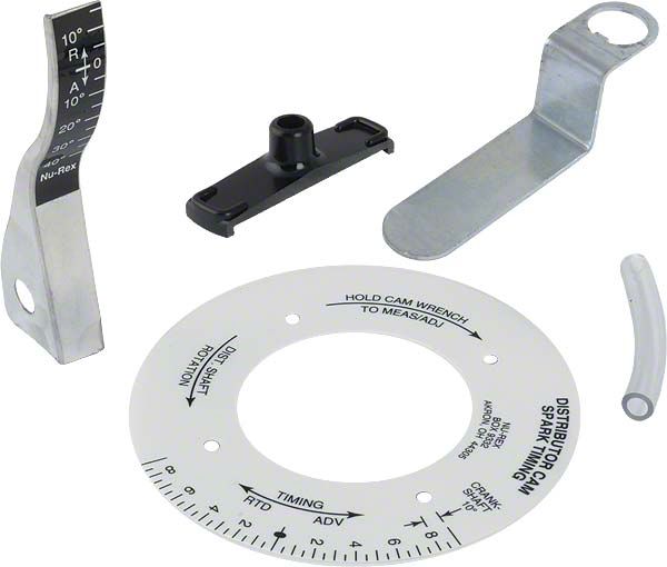 This kit is to be used with your timing light for precise timing. It includes a crank degree scale, a cut away distributor cap, a cam wrench, and instructions. We also have just the degree indicator available in a related listing. MAC's is here to help you keep your Model A in top-shape!