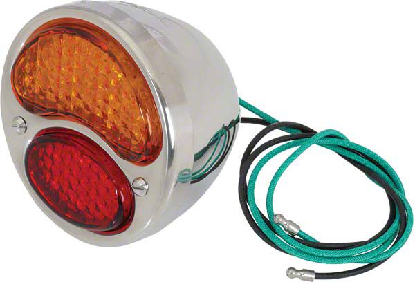 These LED assemblies come with polished stainless steel housings. The half amber lenses have 12 amber LEDs and 7 red LEDs.