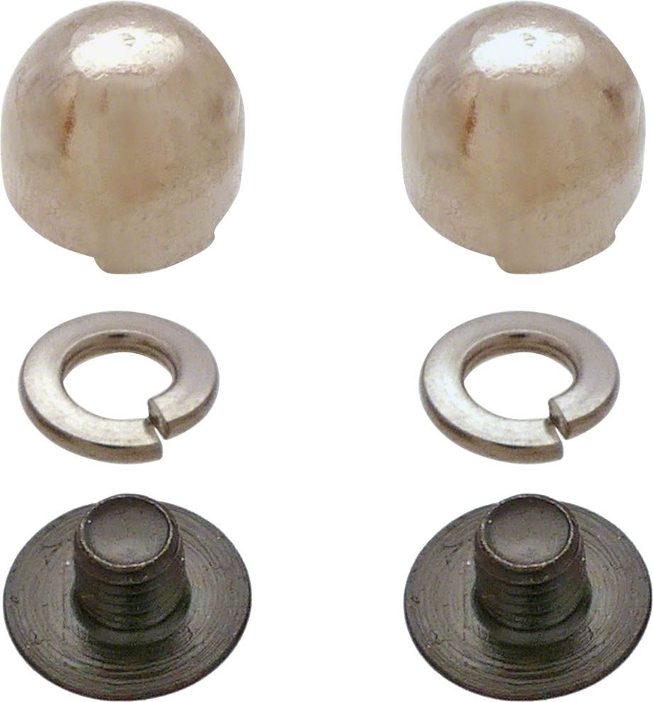 Set contains 2 Nickel plated brass nuts, 2 slotted bolts and 2 lock washers.