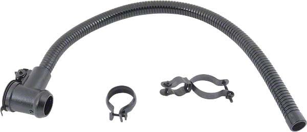 This helps keep oil fumes & blow-by from engine compartment. Flexible conduit tube routes fumes away. If exhaust smoke is exiting from the oil tube, install this accessory tube which has a flexible tube from the cap that extends down beside the oil pan to allow the exhaust to exit under the car.