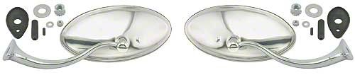 These mirrors have swan neck style chrome arms, polished stainless steel heads, mounting hardware & beaded rubber mounting pads. Excellent quality.