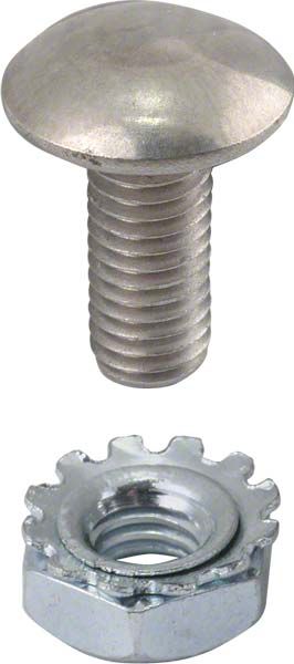 Smooth head bolts with lock style nuts. Looks like the original rivet head. Mounts the radiator support rods to the firewall.