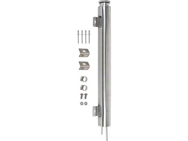 This is 19" long, with a 2 pint capacity, and includes brackets, hardware and an aluminum cap with a leakproof O ring seal.