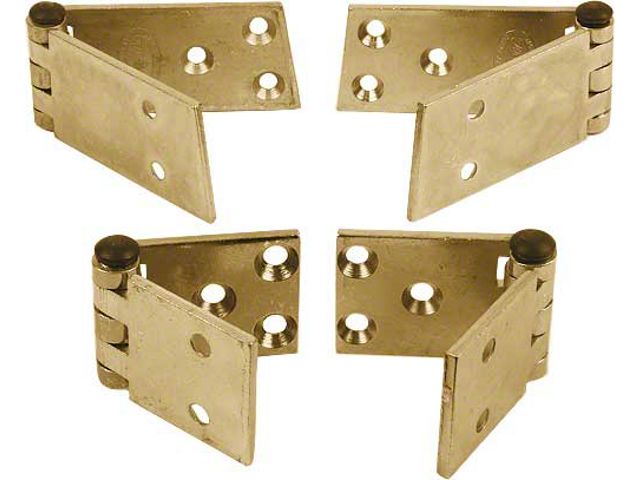 4 hinges with pins. Set includes uppers and lowers for both sides.