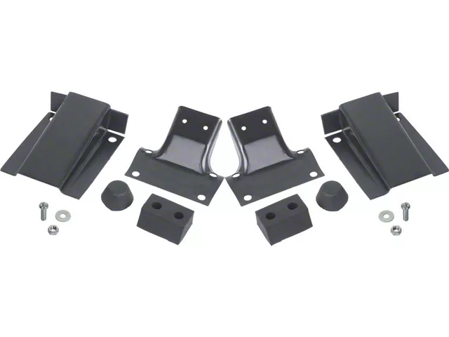 This set includes stamped steel stops & platform supports with rubber bumpers & bolts. You must drill the holes. The part with the rubber stop is on top while the other is used on the seat frame as a brace.