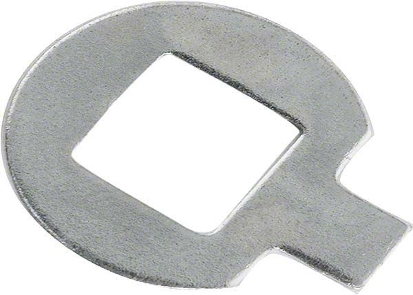 This slides over the shank of the handle. Bend the tab up to keep the acorn nut in place.