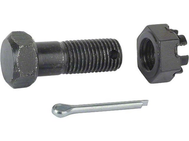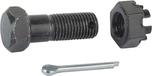 Black finish with cotter pins. Holds the steering box to the frame rail.
