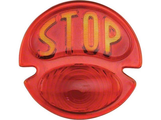 All red glass lens with amber "stop" in top portion.