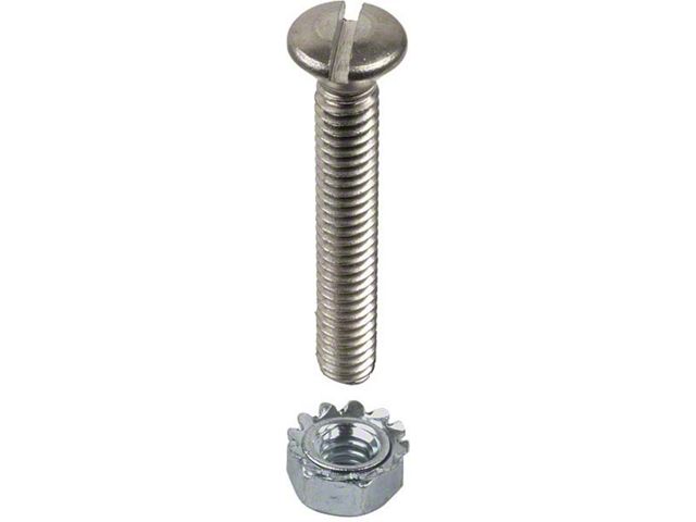 This set includes (4) oval head slotted screws and (4) external lockwasher nuts.