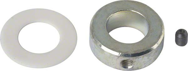This helps stop or limit end play. A great item. Install on the front of the pump by the housing. Includes teflon washer, steel collar with set screw. Helpful for eliminating packing leaks.