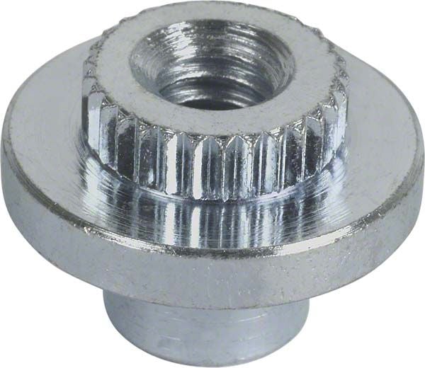 Pressed into the frame, this aluminum nut holds the windshield swing arm.