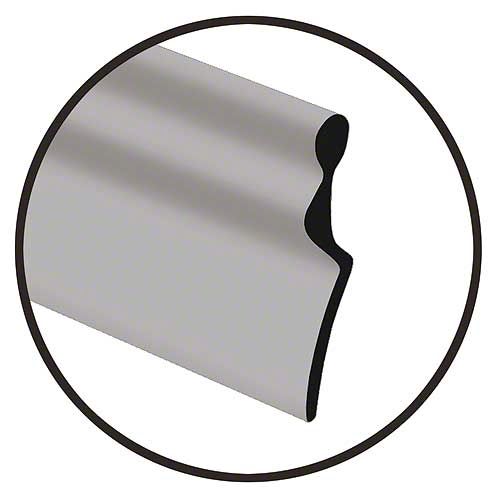 Top of windshield rubber for closed cars and pickup trucks. The round edge of seal is exposed to the outside. This fits between the top hinge & body at the header.