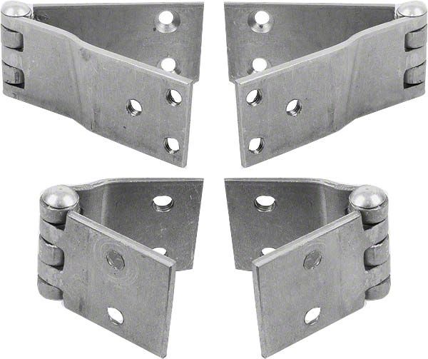 4 hinges with pins. Three- hole bottom hinge at cowl post. Set includes uppers and lowers for both sides. These were originally used from August 1930 to end of production.