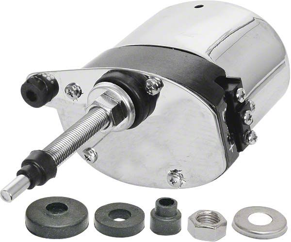 This replacement type electric wiper motor, offered by MAC's Antique Auto Parts, requires mounting modifications. It will not fit original mounting holes. It is a universal application motor. These wiper motors do not have an on/off switch on the motor.