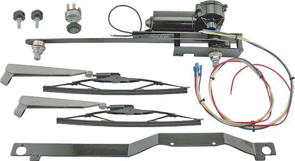 This clean wipe system has a heavy duty 2 speed self-parking motor, a rotary switch, the wiring harness & installation instructions. Includes stainless steel adjustable wiper arms & blades for stock size windshields all 1928-29 Coupes & Tudor Sedans.