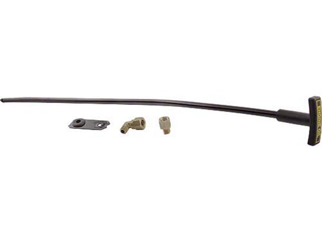 If you're getting old and the under side of your T is further down than you remember it being, here's the answer. You simply remove the lower petcock on the oil pan and this dipstick kit mounts there. Tubing and bracket are powder coated black. Made in the U.S.A.! You can count on MAC's for all of your vintage Model T Ford needs.