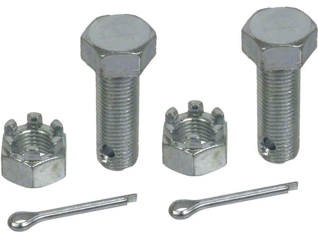 This set contains 6 pieces: 2 drilled bolts, 2 castle nuts & 2 cotter pins. Attaches to Drag Link.