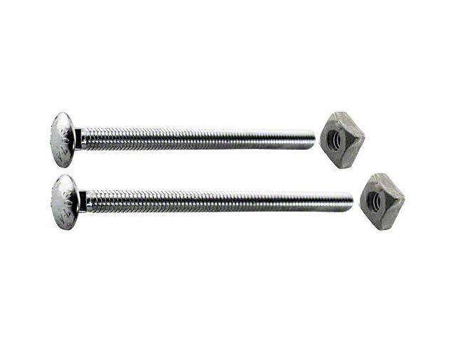 This hood shelf mounting bolt and nut set includes 2 long carriage bolts, 2 short bolts and 4 nuts and mounts the hood shelves to the frame.