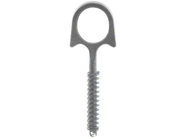 A steel hood clip, powder-coated black, with a spring, washer and cotter pin.
