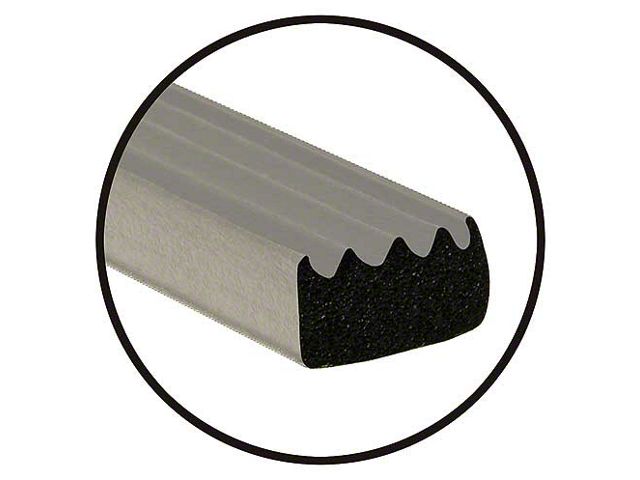This replacement solid rubber hood lacing has a ribbed surface and an adhesive backing. It measures 5/8" wide x 3/8" thick x 8' long.