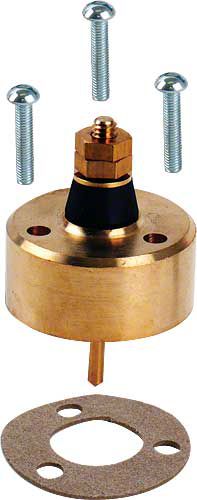 This brass replacement type magneto post assembly comes with screws and a gasket.