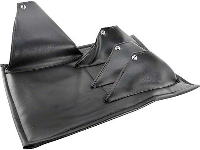 Black naugahyde with a soft backing. Used to insulate the interior of your T, keeping out road dust & drafts. They come in two different styles - 3 slotted, which cover the pedals only & 4 slotted, which cover the pedals & hand brake lever. A useful accessory.